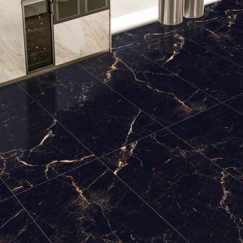Tid til at opgradere dit hjem med denne elegante mørkegrå Pietra flise! Blank finish og smukke marmorårer giver et luksuriøst og stilrent udtryk – perfekt til både gulv og væg.