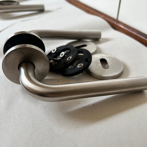 Der er diverse skruer med, men nok ikke komplet til 9 sæt.