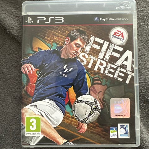 EA Sports FIFA Street 3 videospil til PlayStation 3. Fodboldspil med gadefodboldtema, udgivet under EA Sports BIG-serien. Spillet leveres i original PS3-plastæske med omslag og disk. PEGI 3-klassificeret.