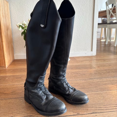 Ride støvler i lak i sort farve i størrelse 37.