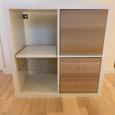 Hvidt lyst møbel til entré eller lignende. Kan også bruges som reol. I pæn stand