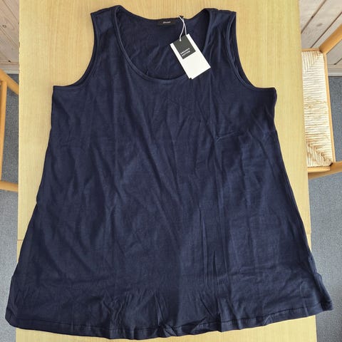 Mørkeblå top med print og A-form, Zizzi, str. S (42/44), længde 73 cm, bryst, 98, helt ny. Fra røgfrit hjem.