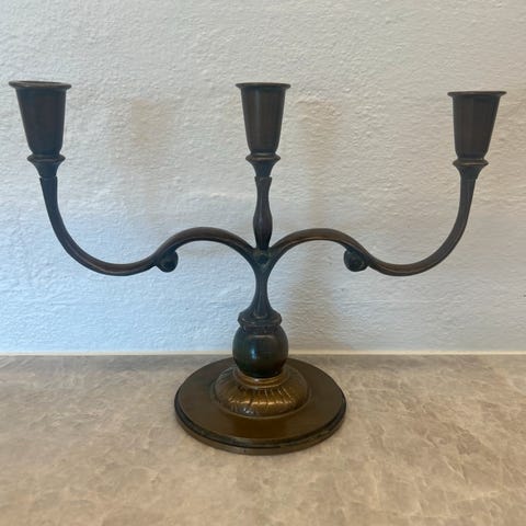 tre armet lysestage i ægte bronze