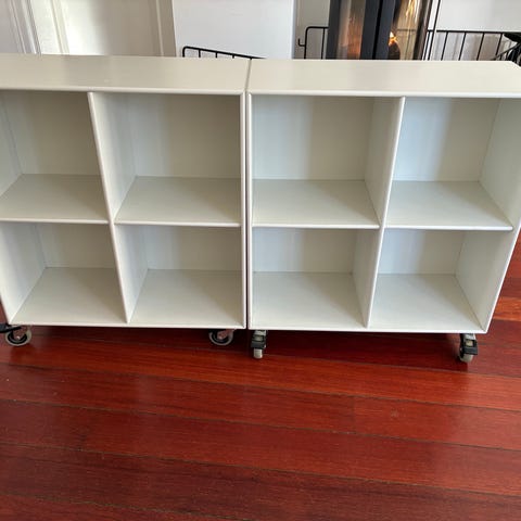 Fedtede overflader, skal slibes og males. Medfølgende beslag og 2 sokler