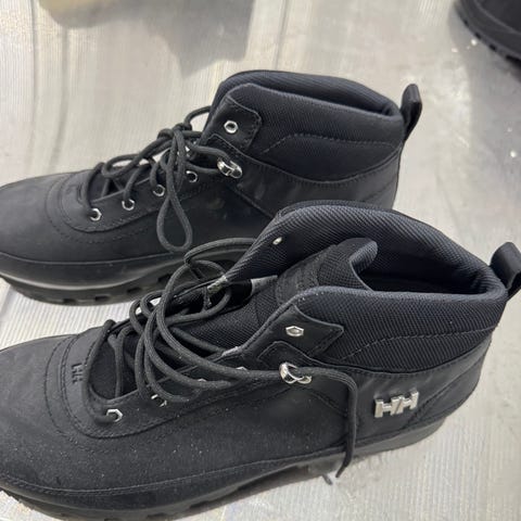Sympatex vinterstøvler i sort. Støvlerne har højt skaft og kraftig mønstret sål. Overdelen er i en kombination af tekstil og ruskindslignende materiale med velcrolukning over vristen og skaftet. Indersiden er polstret for ekstra komfort. Egnet som praktisk fodtøj i koldt og vådt vejr.