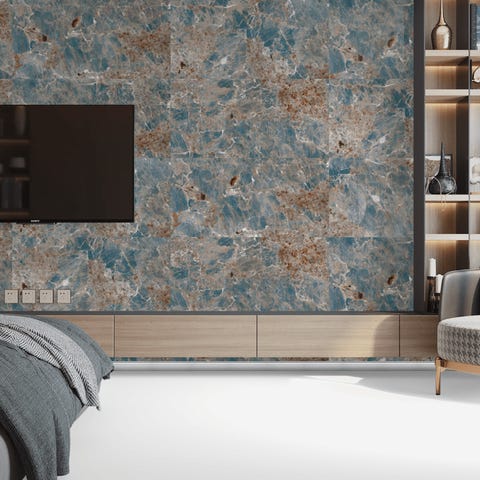 Elegant marmorlook flise med blank crystal-overflade, der giver et knivskarpt og luksuriøst udtryk. Flisen er vedligeholdelsesfri, tåler alle rengøringsmidler og er ideel til alle rum i boligen.