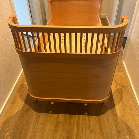 Sebra uroholderen består af et langt formspændt stykke træ, der let monteres mellem tremmerne på sengen. Uroarmen spændes fast med to polstrede skiver ved hjælp af en drejspænde, som beskytter træmmerne den fastgøres på.