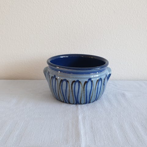 Smuk skål fra 1960'ernes Potteri Abbednæs med en imponerende blanding af råt, hvid og brun glasur - måler 21 x 5 cm og er i perfekt stand og super smuk - pris 149,-