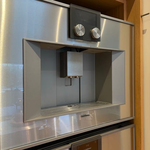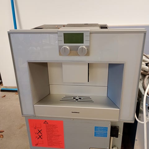 Gaggenau Espresso kaffemaskine med tallerkenvarmer nederst. Fra Maj 2013. Ikke brugt siden vi overtog huset i 2022 da vi kom med vores egen Rocket Espressomaskine.