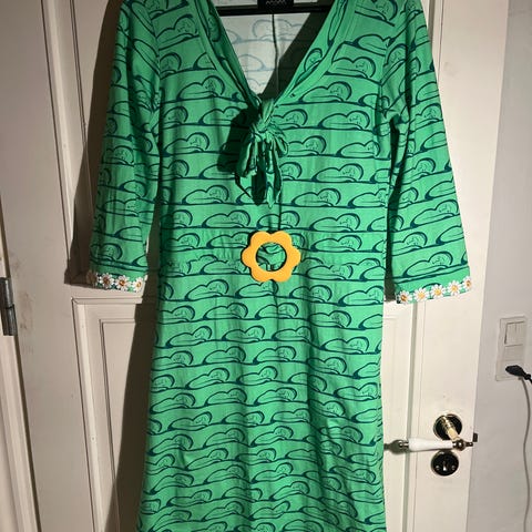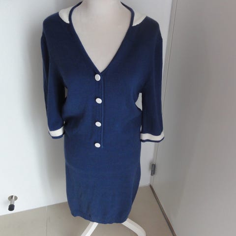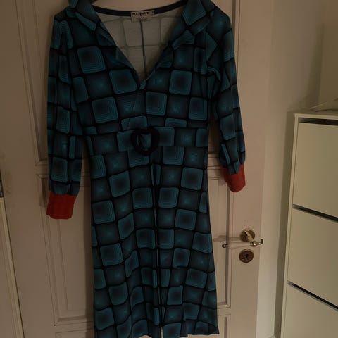 Kjolen har lange ærmer med knaplukning ved manchetterne og gennemgående knaplukning foran. Fin halsudskæring med let v-åbning og små læg ved skuldrene. Velegnet som hverdagskjole til kvinder.