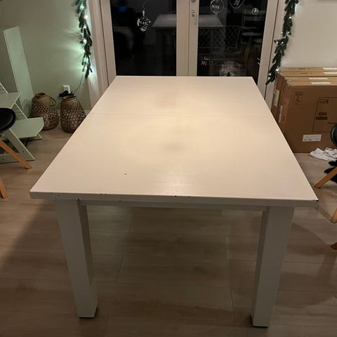 Bordet har brugsspor (se billeder). Lidt små hak osv. Men ikke noget voldsomt. Dog deraf prisen.