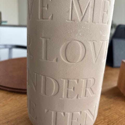 Vase love song fra Kæhler i sandfarvet stentøj. Højde 22 cm, dia. 12 cm.