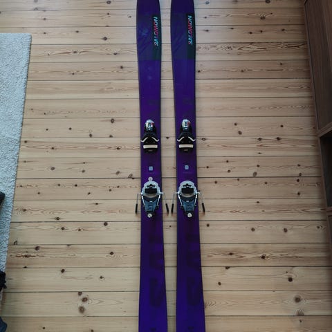 Salomon QST 92 ski 185 cm monteret med Salomon Warden MNC 13 binding. Nyslebet og vokset hos Steep&Deep. Købt i 2022 og har stået en uge om året siden. Har forventelige brugsspor, men sålen er i fin stand.