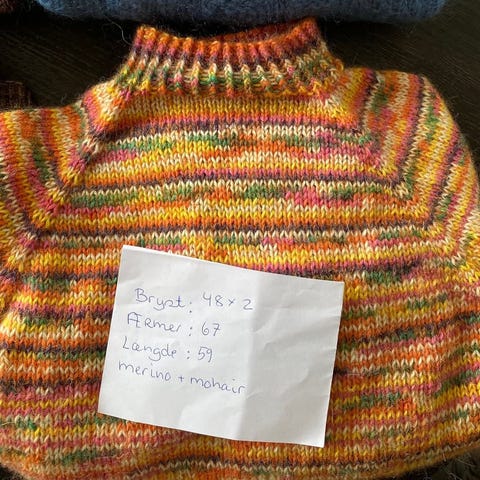 Smukkeste sweater, str S/M, den er strikket i mohair. Det er Sunday sweateren.