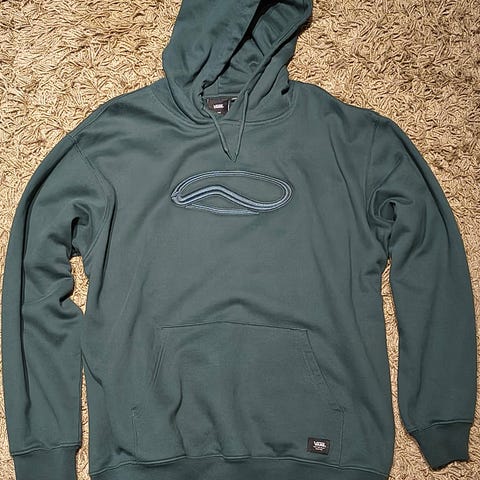 Vans hoodie til herre i størrelse M. I bomuld og er med stort Vans-logo på brystet. Klassisk hoodie-design med hætte og snøre samt kængurulomme foran. Velegnet til hverdagsbrug og afslappet streetwear-stil. Pris pr. styk, jeg sender gerne mod forudbetaling.