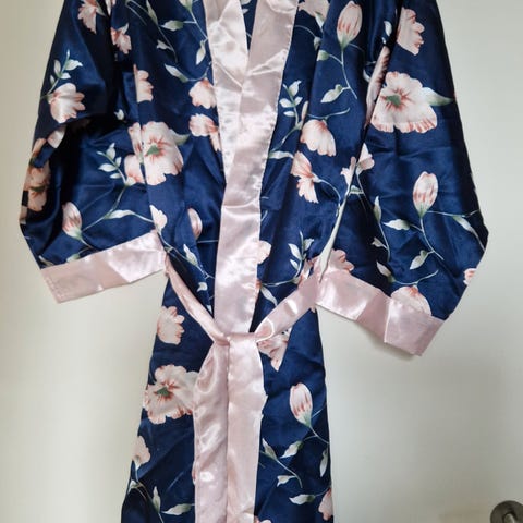 Skøn varm morgenkåbe fra PIP studio Les Fleurs i 100 % bomulds frotte. (nypris 1000,-) Mørkeblå med blomstermønster. Str. XXL (46).