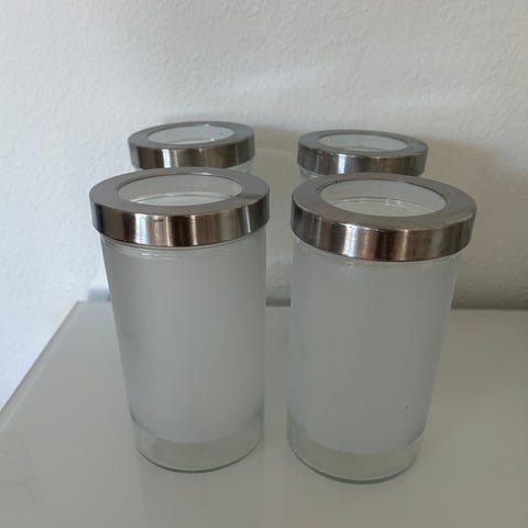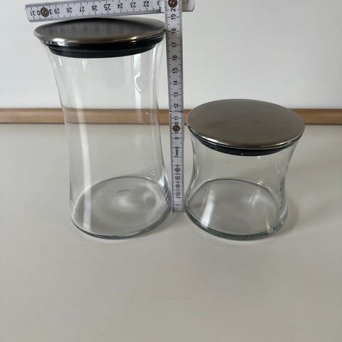 5 opbevaringsbeholdere Dropper. 3 stk 18x10 cm, 2 stk 21x12 cm og 1 stk 28x 10 cm samlet