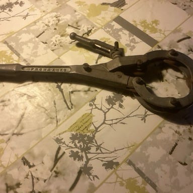 Rørskærer til jernrør i størrelsen 1/8" til 2". Værktøjet er egnet til skæring af metalrør og har justerbar spændemekanisme til forskellige rørdiametre. Håndtaget giver mulighed for at påføre det nødvendige tryk ved skæring af rør i værksteds- eller installationsarbejde.