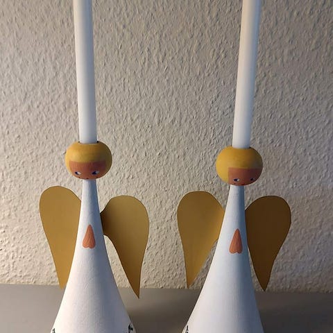 Fine små håndmalede porcelæns engle lysestager. Passer til juletræslys.