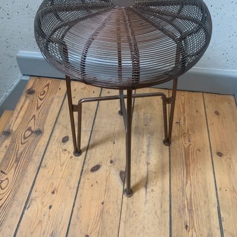 En dekorativ vintage skammel/taburet med stålben sælges.