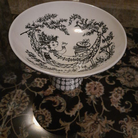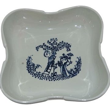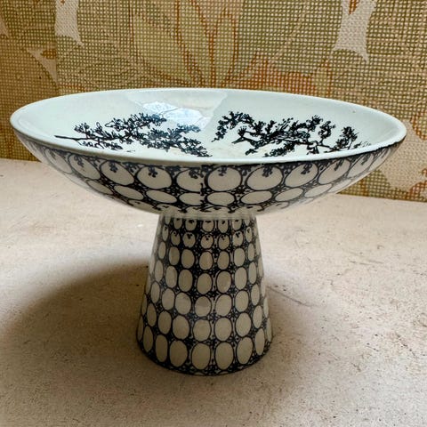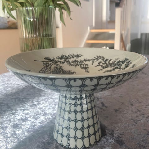 Bjørn Wiinblad opsats i porcelæn rød-hvid mønster