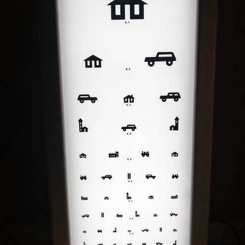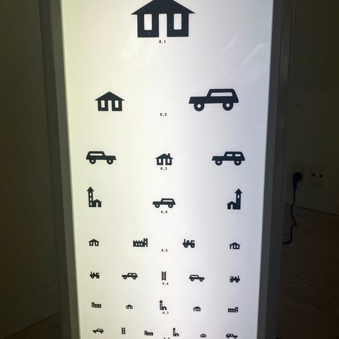 Vintage synstavle med lys, Snellen, donation til WHO fra Vesttyskland