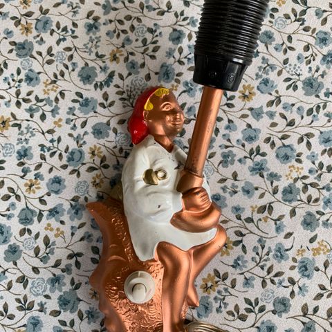 Original Ole Lukøje væglampe , hvor lampen er udformet som en paraply i rød farve med stjernedekorationer. Lampen har en fatning skjult under paraplyskærmen og ledning til strømtilslutning. Velegnet som dekorativ belysning på bord eller hylde til børneværneværelset