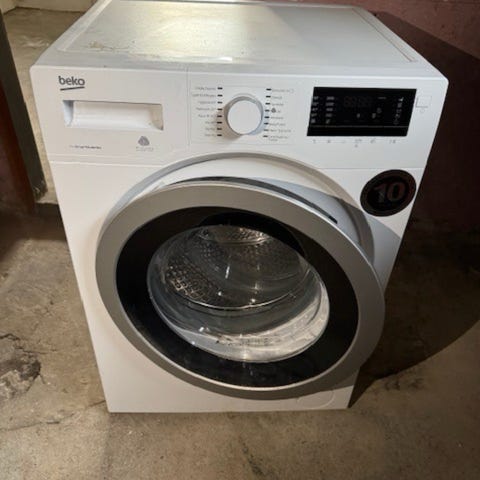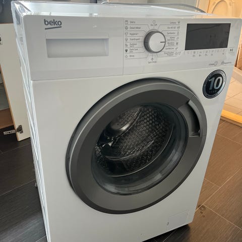 Beko frontbetjent vaskemaskine i hvid. Maskinen har frontbetjent luge med rund glaslåge og rustfri tromle. Betjeningspanelet består af drejeknap til programvalg samt digitalt display med knapper til indstilling af temperatur, omdrejninger og øvrige funktioner. Velegnet til almindelig husholdningsbrug til vask af hverdagstøj, sengetøj og andre tekstiler efter behov.