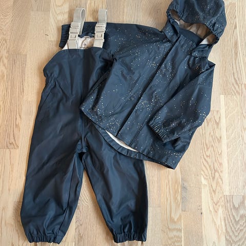 Jakken har kun nogle lette pletter foran. Ellers er den i rigtig god stand og har en lynlås til at holde barnet varmt.