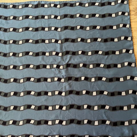 Fint silketørklæde - mærke: Charlotte Sparre. Mønster: kornarks i forskellige farver - str: 49 x 52 cm.