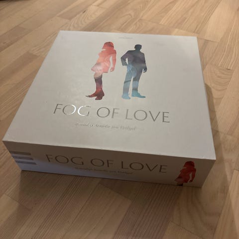 Fog of Love brætspil. Spillet er et romantisk komedie-rollespil for to personer, hvor spillerne skaber og spiller hver deres karakter i et forhold. Spillet indeholder spillebræt, kort og øvrige komponenter, der bruges til at spille forskellige scenarier og historier om parforhold.
