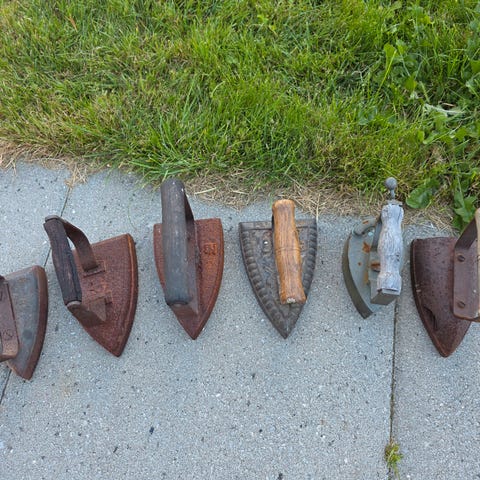 4 gamle strygejern. Antikviteter i fin stand ikke rustne. Ca. 100 år gamle. Pris pr. stk. 300 kr. Se foto 2389K. Samlet pris for de 4 stk. 1100 kr.