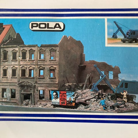 POLA 164 - byggesæt VVS-firma “Anton Schulz” - byhus m/baggård - patineret - vedlagt 1stk. “Wiking” Hanomag-Kurier - Meister-Modell - skala 1:87 - HO.