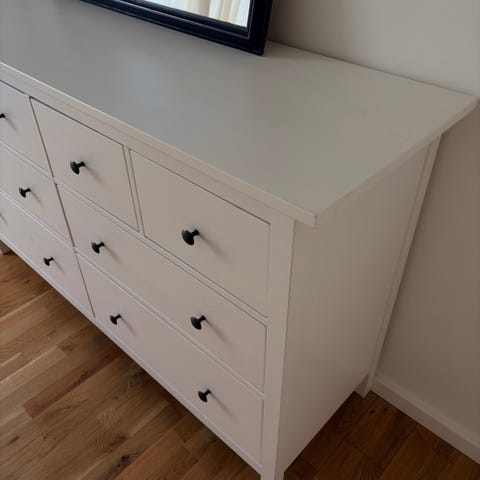 Selling a white chest of drawers with 4 spacious drawers. Clean, sturdy and in very good condition, with only normal light signs of use. Perfect for clothes, documents, or general storage in a bedroom or hallway.