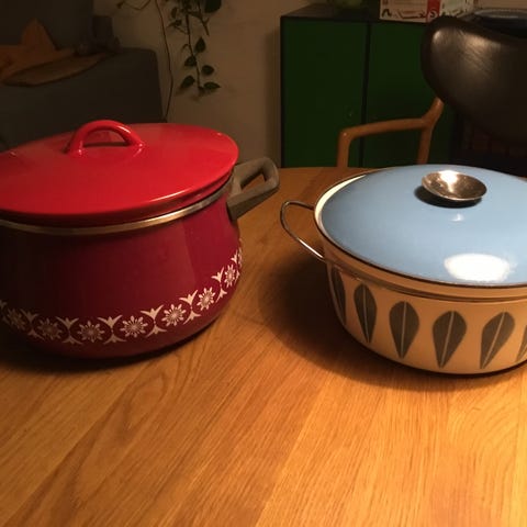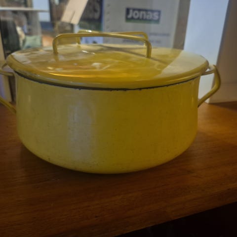 Fin retro gryde med lettere patina. Diameter 21 cm.