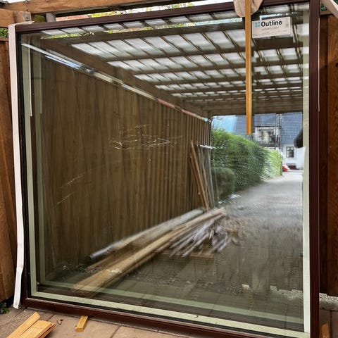 3 lags glas. Vinduet er højt og smalt. Mål: H: 186 cm og B: 38 cm.