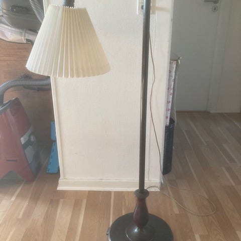 Gulvlampe og bordlampe med sort metalstel og hvide skærme