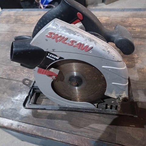 Skill rundsav i grå. Denne rundsav er designet til præcisionsskæring og er udstyret med en kraftfuld motor, der gør den velegnet til forskellige typer af byggeprojekter. Saven har en robust konstruktion og er nem at håndtere, hvilket gør den ideel til både professionelle og hobbybrugere.
