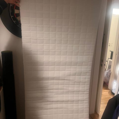 Jysk Dreamzone boxmadras i str 90x200 cm. på ben. Madrassens funktion er rigtig fin. Det er kun pletterne (spildt kaffe) og brugsspor, som fremgår af billederne. Velegnet som enkeltseng, gæsteseng eller til sommerhus, hvor der er behov for en simpel soveplads.