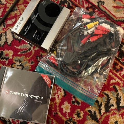 TRAKTOR Kontrol S2 DJ controller med diverse udstyr.