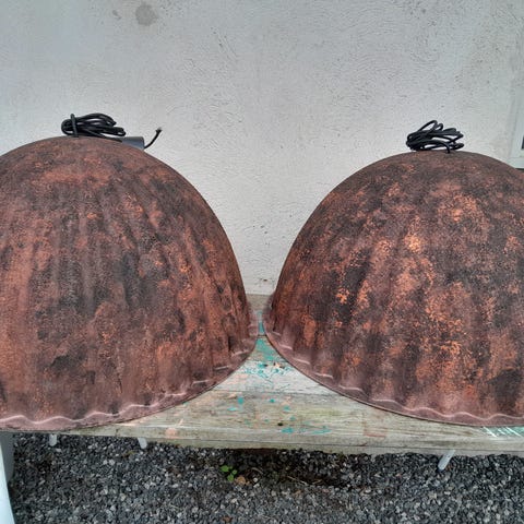 2x Loftlampe af valnøddemønstret stål med LED-belysning.