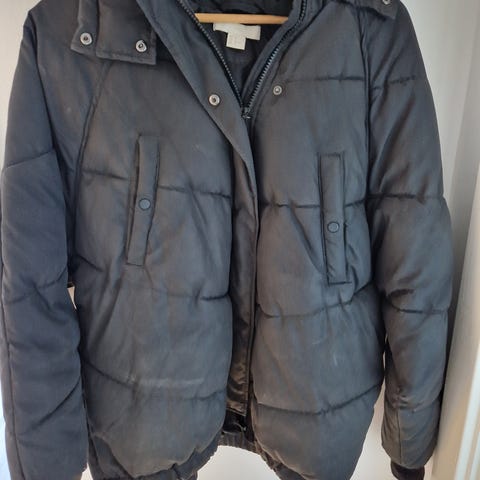 Damejakke - sort - str 42 - fra H&M. Brugt få gange. Der er rib ved ærmerne og forneden .Hætte.