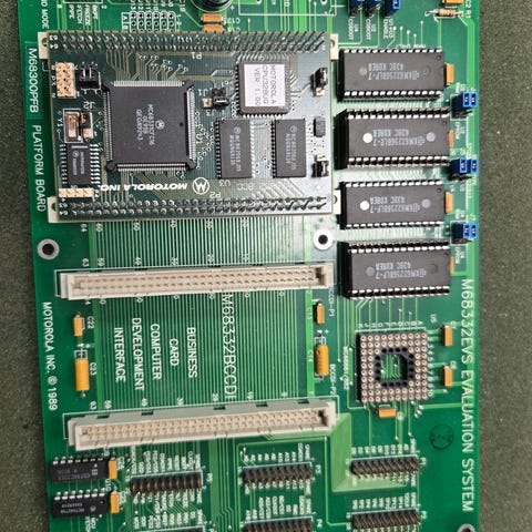Motorola udviklings kit færdigsamlet klar til brug, har været brugt i et aftenskole projekt 2004 indkøbt for kr. 625,- dette er en rest fra dette og derfor helt nyt aldrig taget i brug, der medfølger software Incl. manual til programmering på CD