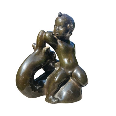 Vintage sejlbåd i messing kobber af Mario Jason på en fod af Alabast. Signeret