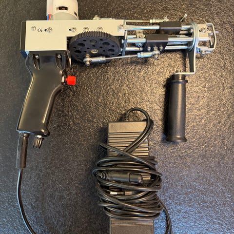 Tuftemaskinen er brugt ganske få gange, fremstår i rigtig god stand og virker upåklageligt.
