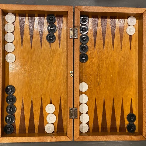 Gammel vintage Carlsberg backgammonspil fra ca 1990. Er brugt i de første backgammon cup som Carlsberg var med til at starte