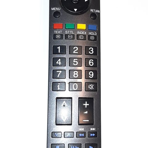 Der medfølger fjernbetjening, ledninger og vægbeslag.