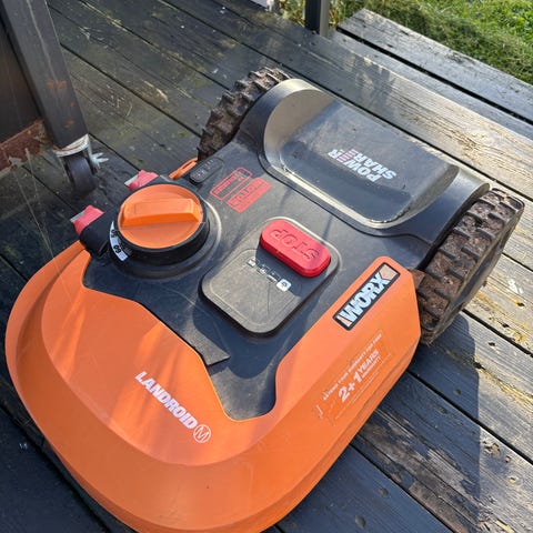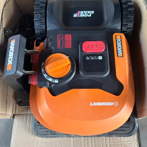 Jeg sælger nemlig min trofaste og pålidelige Worx Landroid M500 grundet køb af nyere robot. Den fungerer via kanttråd og passer til græsplæner op til 500m2.