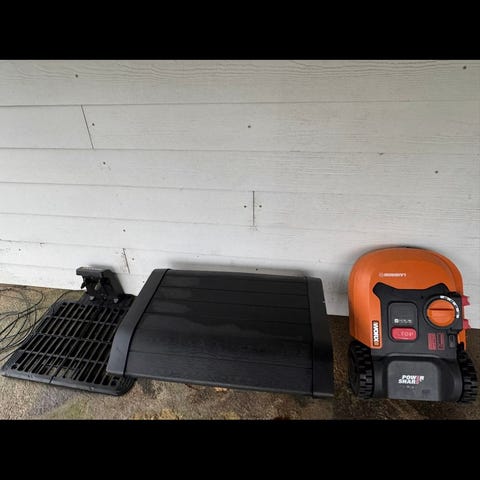Robotplæneklipperen er tre år gammel og har nogle brugsridser, men intet af betydning for dens funktion.