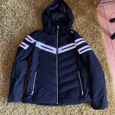 Super lækker ski jakke fra CMP mange lækre detaljer som de to store lommer på indersiden som har plads til handsker. Lille lomme på ærmet til liftkort og en hætte der kan lynes af. Super varm og vandtæt så man kan stå en hel dag i regn. Ikke at det er at anbefale. Brugt sammenlagt 8 dage.